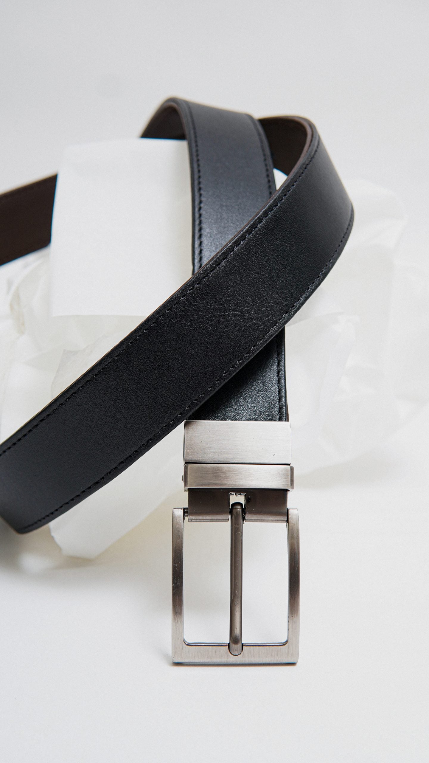 Formal Black/Brown Leather Belt-Classic Slim Reversible Buckle