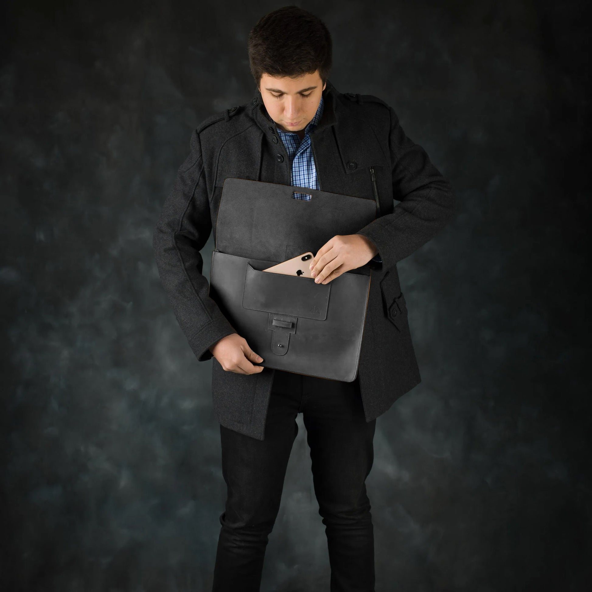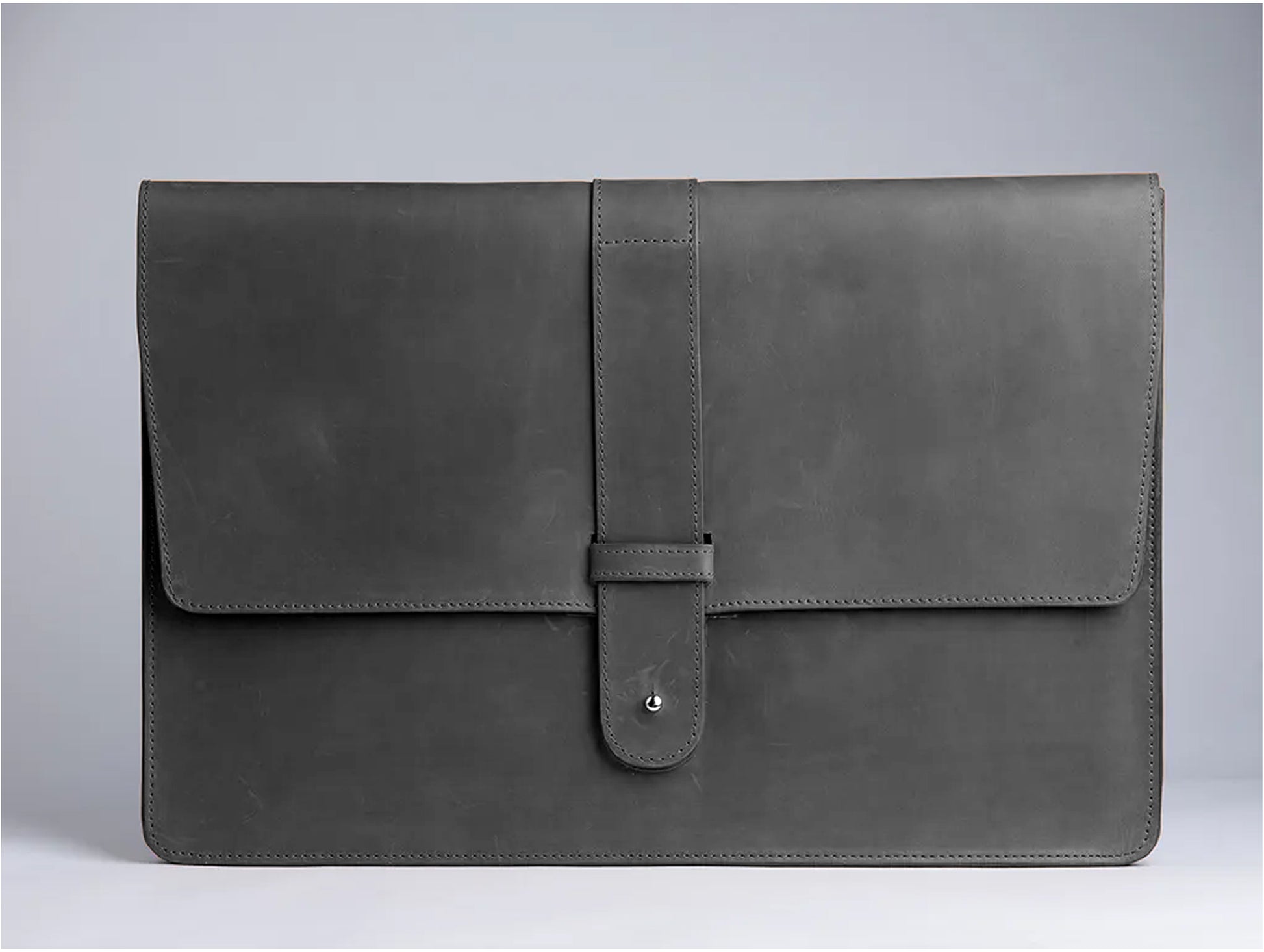 Leather Laptop Sleeve with Pin Closure-Black-15 inches