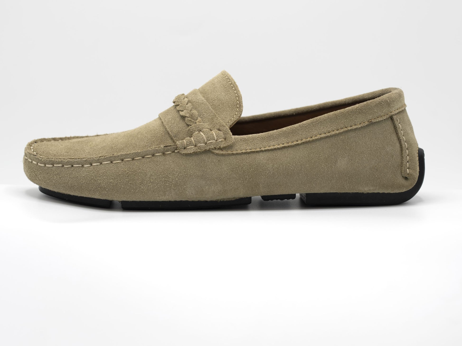 Blue Loafer in Suede Leather Upper,  Sheep Leather Lining And Insock, Rubber Sole.