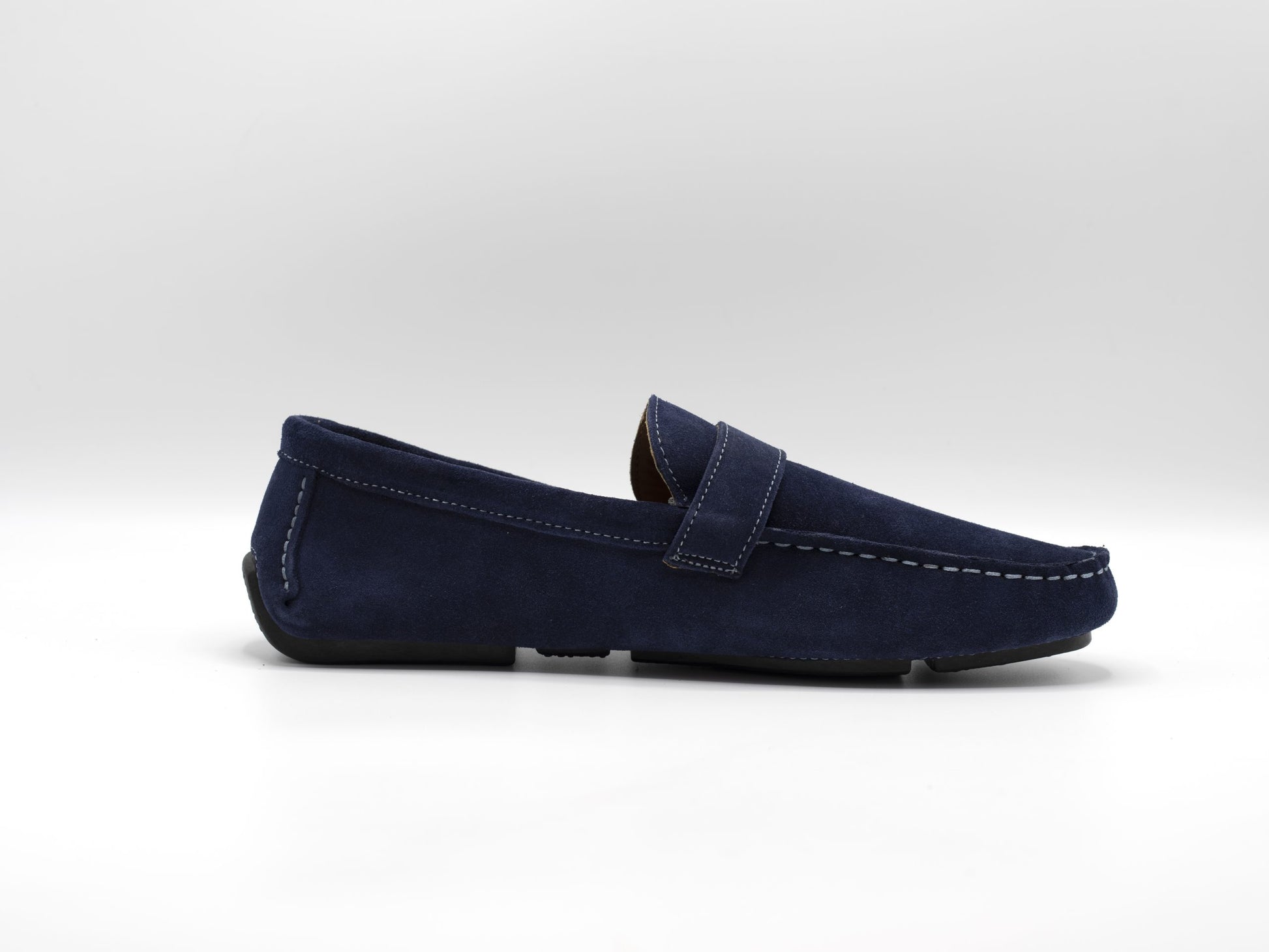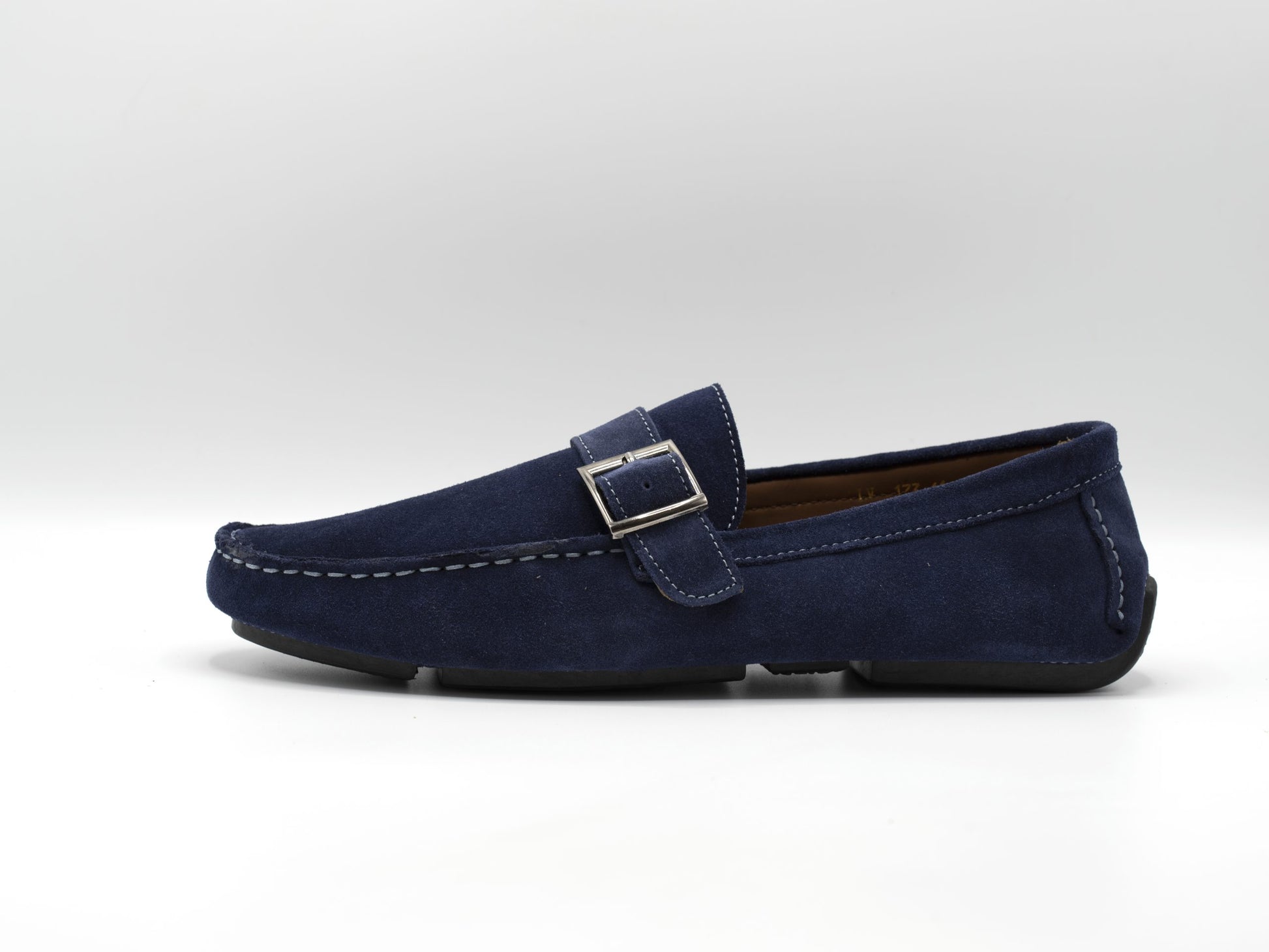 Blue Loafer in Suede Leather Upper,  Sheep Leather Lining And Insock, Rubber Sole.